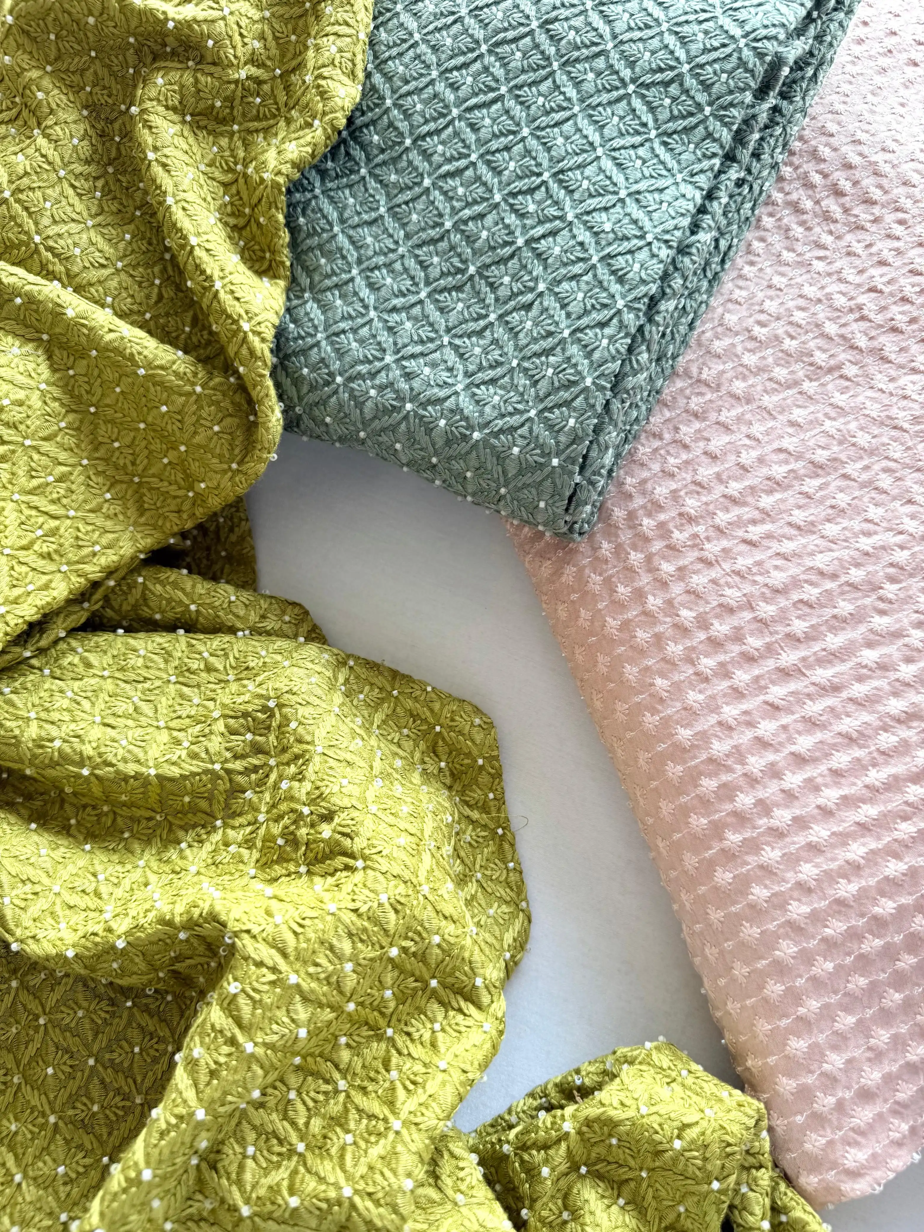 Intricate, beautiful, and unique. Embroidery weaves stories into fabric, making every piece a work of art in motion. From delicate floral patterns to bold, geometric designs, embroidery adds texture, depth, and character to your wardrobe. Whether it's handcrafted by skilled artisans or machine-stitched with precision, each embroidered fabric speaks of tradition, creativity, and attention to detail. Ideal for those who appreciate the finer things in fashion, embroidery adds a unique charm to any outfit.