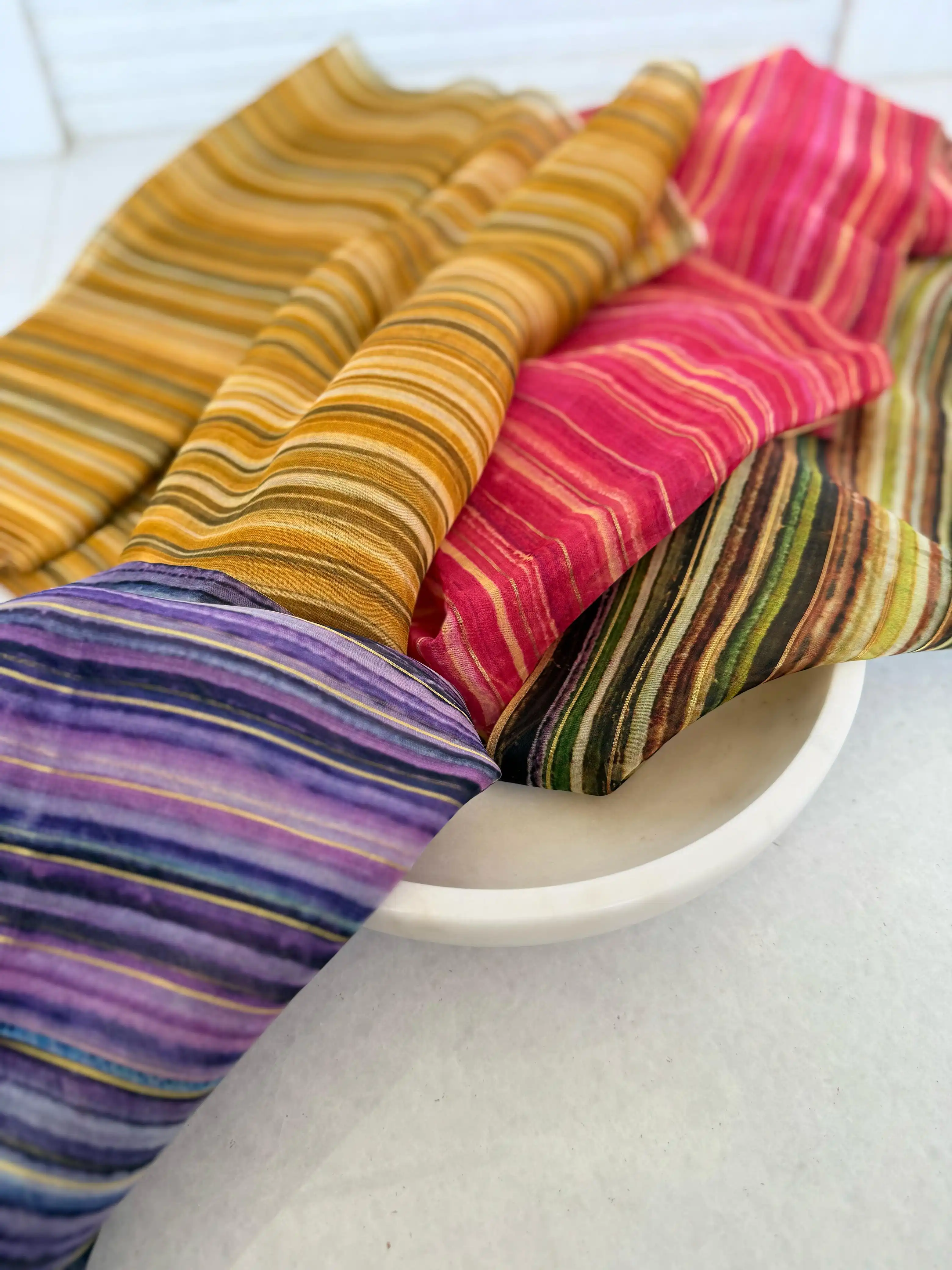 A splash of tradition in every knot! Bandhani brings you the vibrant essence of Indian culture with its playful patterns and radiant colors. Each piece tells a unique story, created by artisans who carefully tie and dye the fabric to form beautiful designs. Bandhani is perfect for adding a pop of color to your wardrobe, whether you're dressing for a festival, a casual outing, or simply want to embrace the lively spirit of traditional craftsmanship.